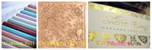 在一定温度和压力下,铝箔转移到产品表面,不同的锌或铜腐蚀版本的不同模式和单词。
